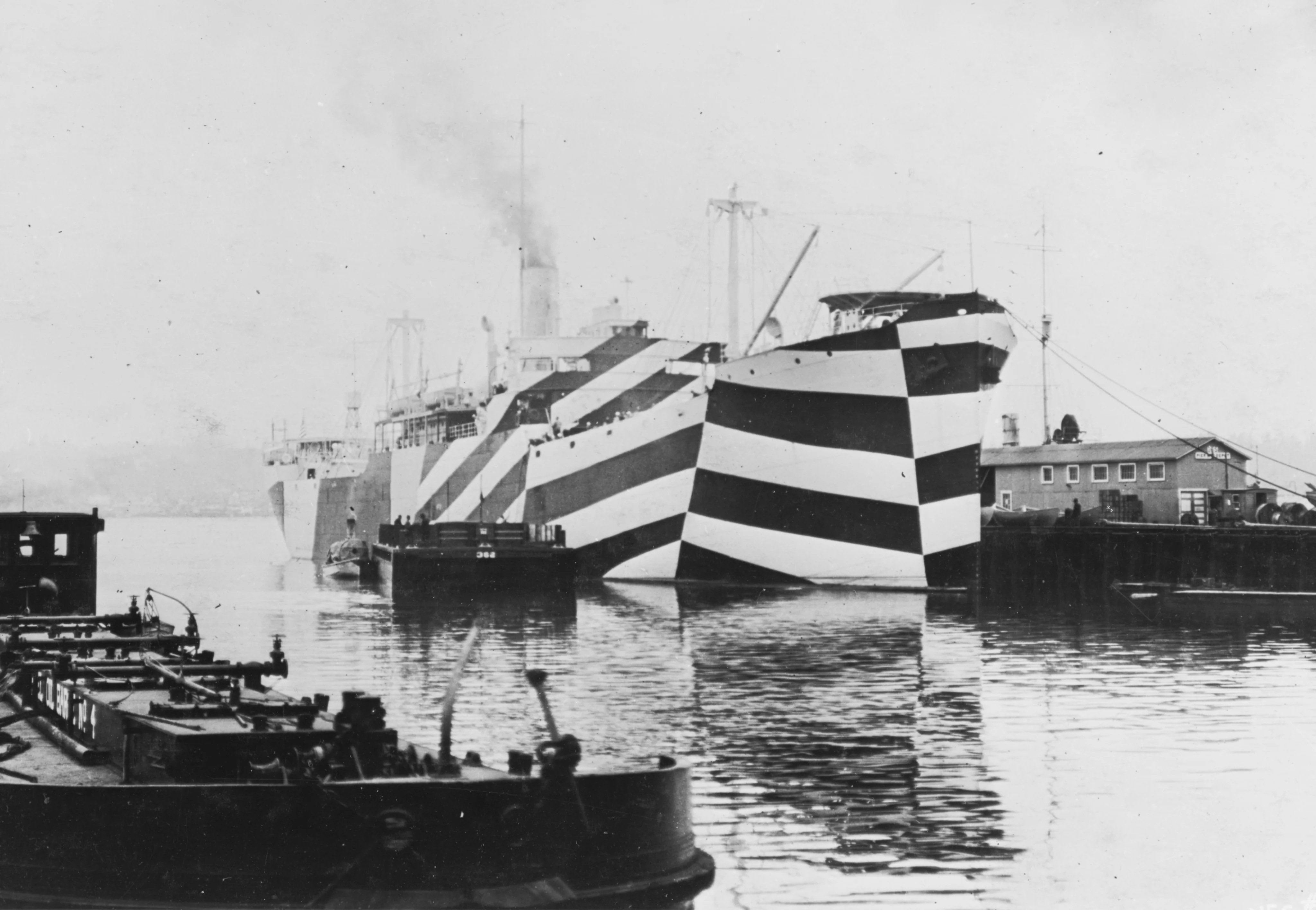 Dazzle camouflage was designed to confuse rather than conceal. Bold, high contrast geometric patterns were painted onto ships to distort perception, making it difficult for enemy observers to judge a vessel's speed, direction, and distance. This uncertainty reduced the accuracy of submarine and artillery attacks at sea. Dazzle remains a powerful example of how art, optics, and human perception were deliberately used to protect soldiers, civilians, and critical supply routes during both World Wars.